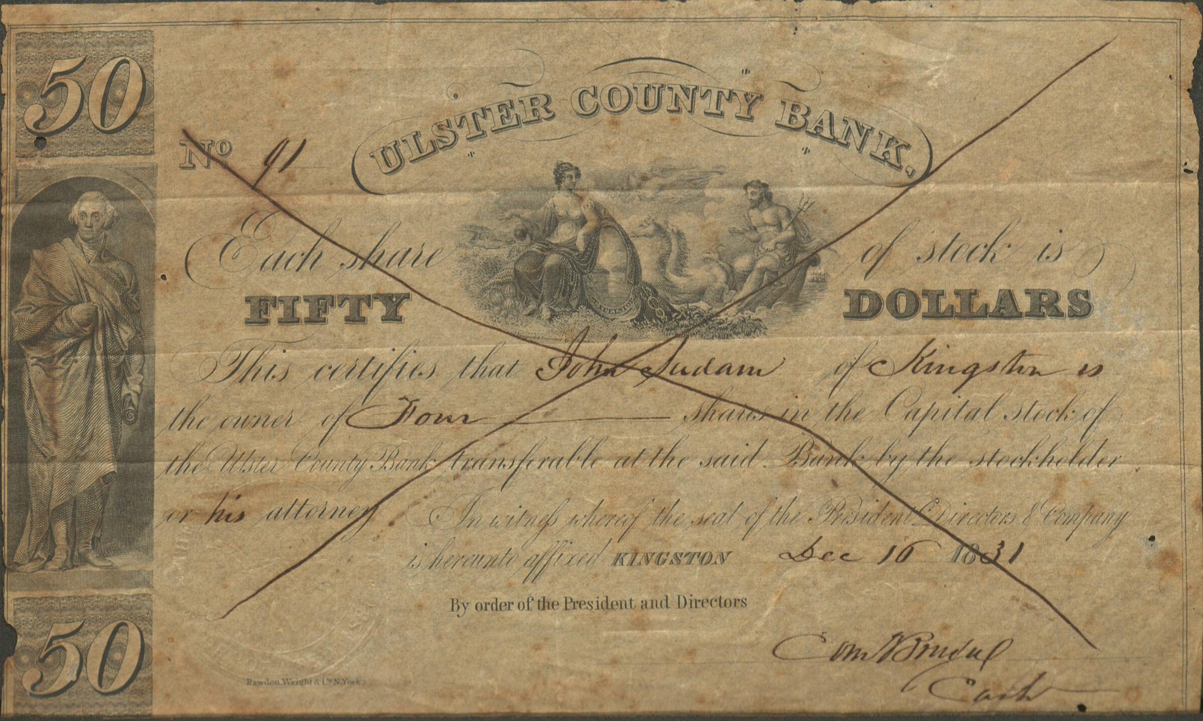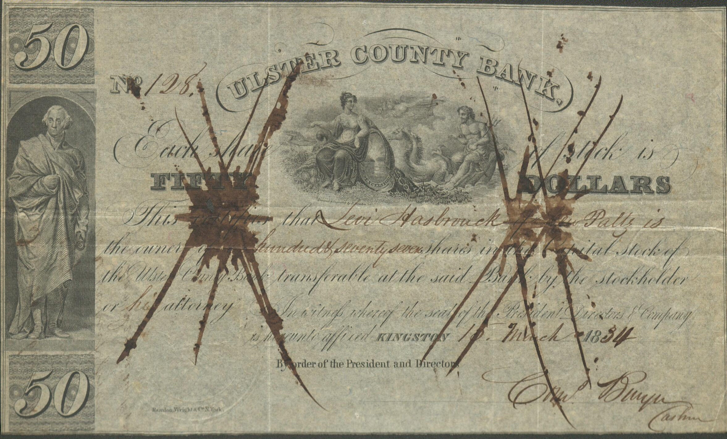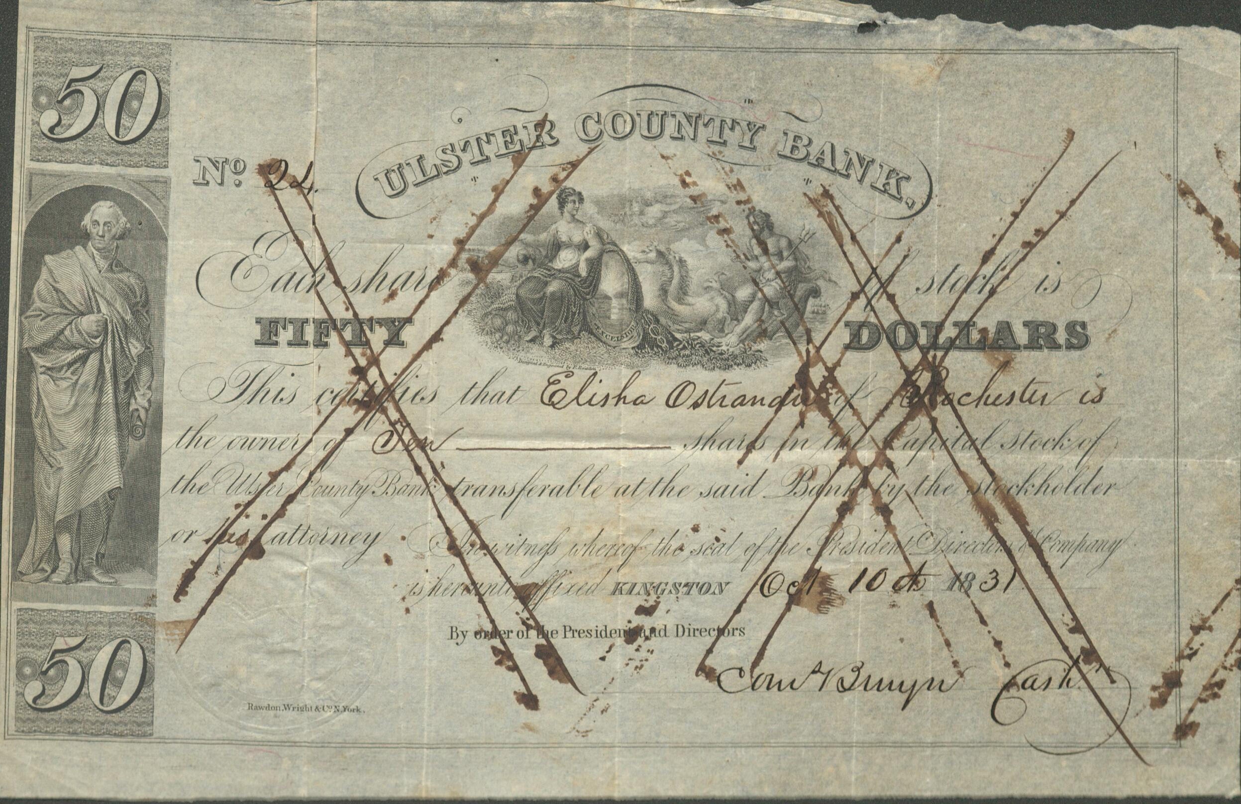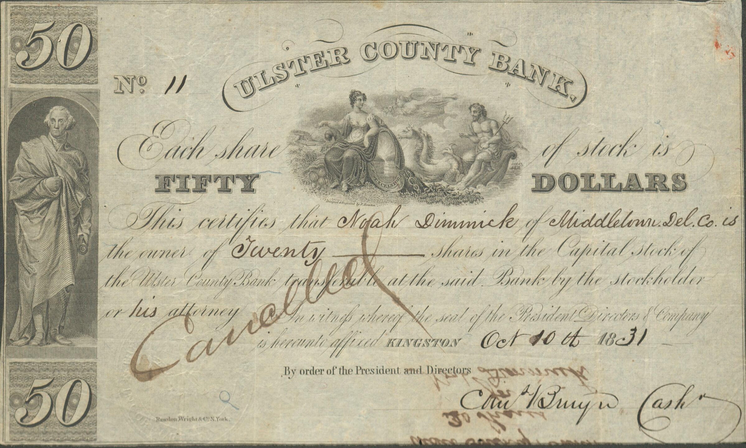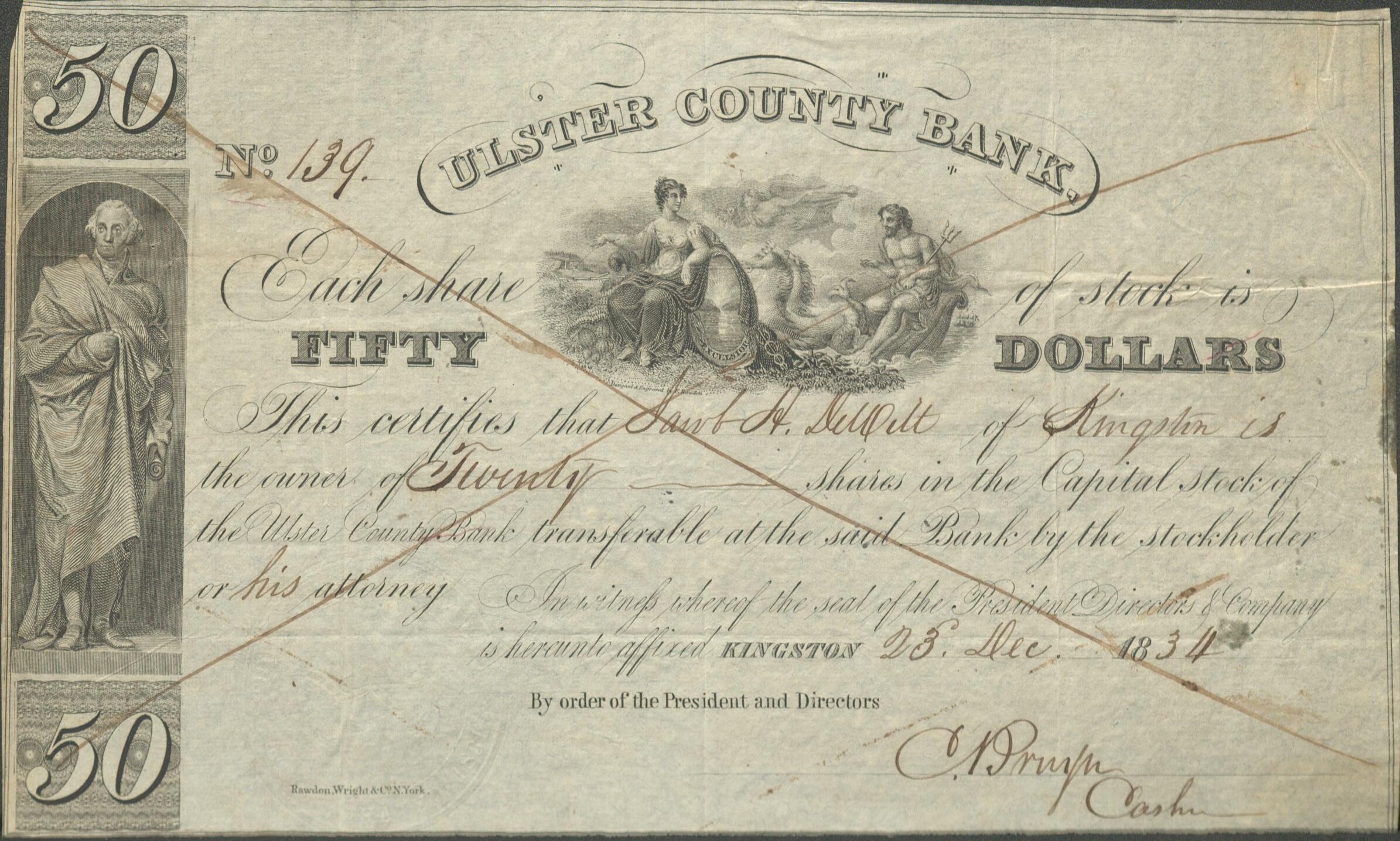 Over the years I’ve found twenty of the Ulster County Bank’s stock certificates.