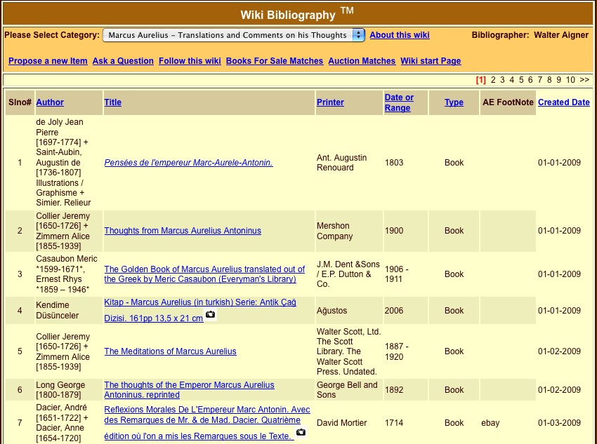 This month we have introduced significant changes on the site. Gone is most of the complexity that went a long way to explaining why almost 20% of our research members have doctorates. In place of a menu that rivaled Adobe Page Maker for complexity is a simple list of seven categories listed on the side bar under the sign-in box that is also expressed as a pie-chart accessible via the pie-chart symbol on the tool bar. We believe AE has become seven functional parts: Books for Sale, AE Monthly, Upcoming Auctions, the AE Database and Premium Services, a ubiquitous Other and Wiki Bibliographies. Six months into their introduction Wikis now claim a slice of the pie chart. They will become important because they respect the collector’s time.