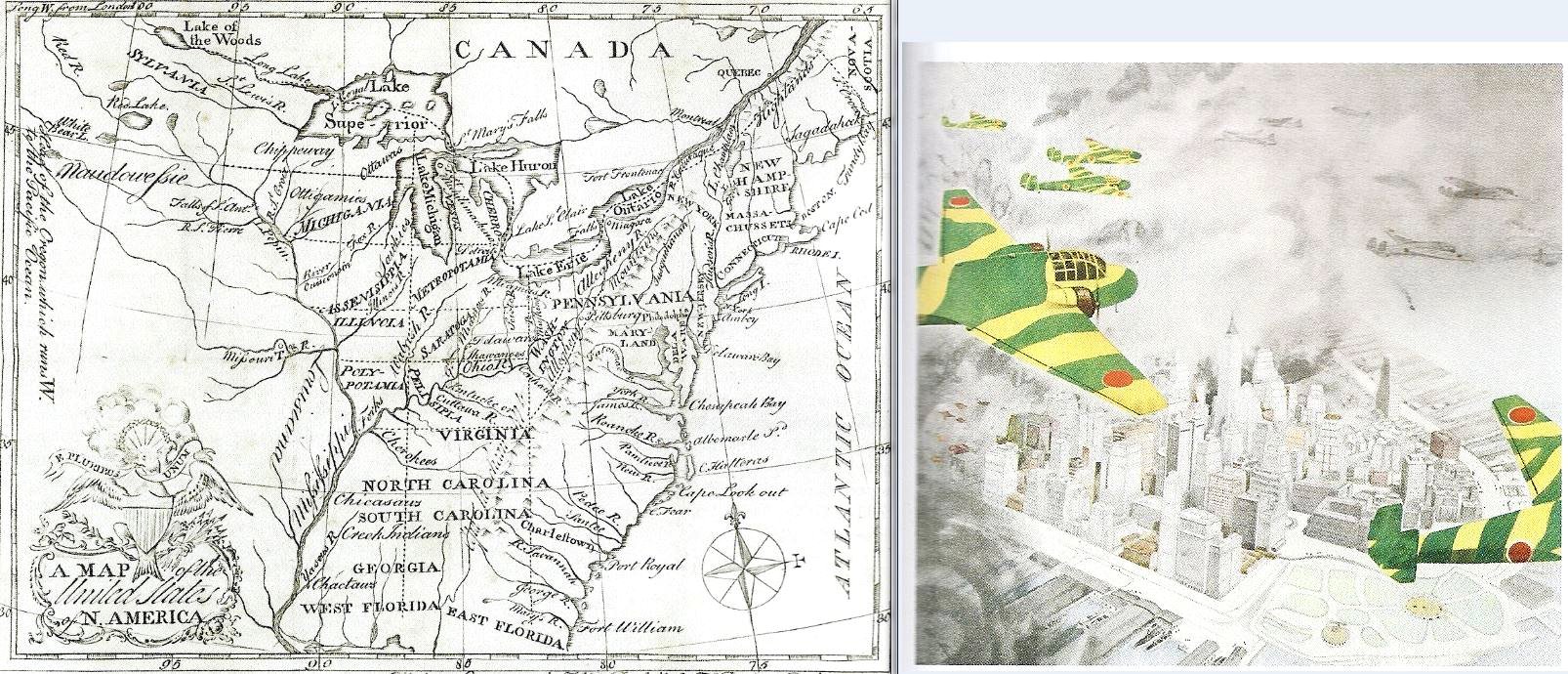 Item 66 is an interesting World War II piece. It is Dai Toya Senso Kaigun bijutsu (Naval Art of the Great East Asia War). It was put out by the Greater Japan Pacific Art Association in 1943. It was designed to stir pride in the Japanese Navy among the nation's people. It illustrates many real events, such as Pearl Harbor and the assault on Wake Island, but also shows a wished for planned attack – Japanese planes on a bombing run over New York City. $6,000.