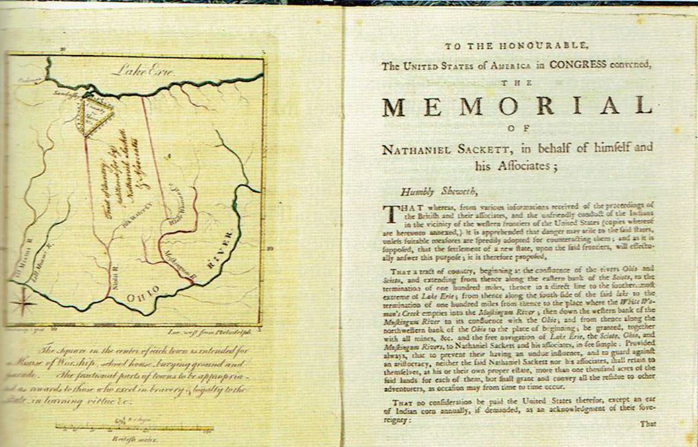Item 79 is The Memorial of Nathaniel Sackett, in behalf of himself and his Associates, published in 1785. His associates were all Revolutionary War veterans, and they were seeking Congress lease them a tract of land between Lake Erie and the Ohio River for the cost of “an ear of indian corn annually if demanded.” This may seem like a bargain price, even by 1785 standards, but Sackett explains why such a lease would be good for the United States. He claims that their settlement would help secure “the interior of the country from hostile and rapacious incursions.” The British were still ensconced up there in Canada and there were concerns they would attempt to destabilize the area. Additionally, Sackett says that such a settlement will make the land more productive, helping to generate funds to pay off the national debt. This rare piece contains a map of the area, one of the earliest of Ohio. £32,000 (US $52,290).