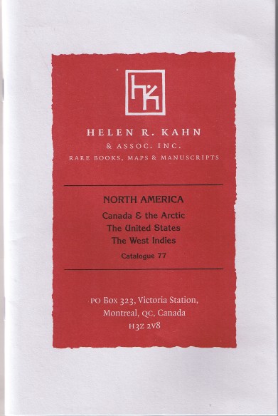 Helen R. Kahn and Associates has issued their 77th catalogue: North America. Canada & the Arctic, the United States, the West Indies. Offered are primarily early works - 17t...