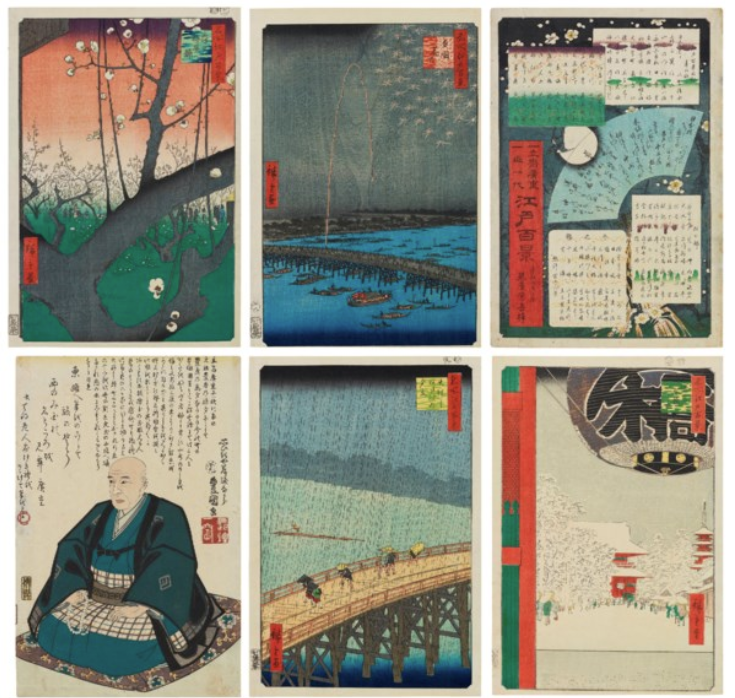 This was the week for famous Japanese prints. Sandwiched between the two Great Waves in terms of price was One Hundred Views of Edo by Utagawa Hiroshige. It took in $1,079,500 at Christie's, around four times the expected price.