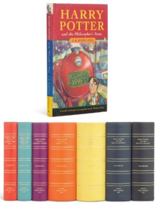 These items were very old, but this set of books is quite recent, late 20th to early 21st century. It is a complete set of first editions of the seven Harry Potter novels. They were published from 1997-2007. These copies were signed by author J.K. Rowling. Sold at Bonhams, they took in $153,042.