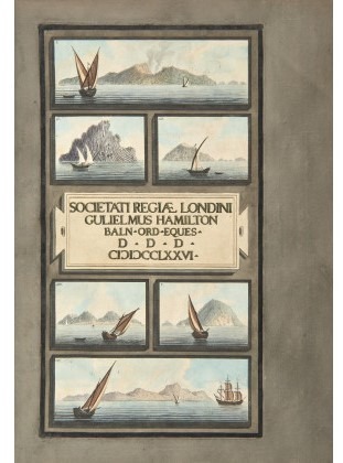 Campi Flegrei indicates the vast area around Naples, still characterized today, but since ancient times, by lively and sometimes intense volcanic activity. The work is mainly dedicated to the Vesuvius and its spectacular eruptions, but also to some of the places surrounding it; some of the plates and descriptions are also dedicated to other volcanoes in southern Italy, in particular the Sicilian ones in the Aeolian Islands and Etna. Hamilton directly supervised the work of the illustrator Fabris, who accompanied him on his excursions and who is in fact portrayed together with Hamilton in many of the plates.