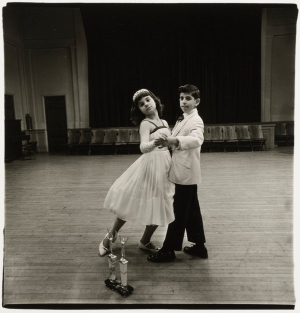 DIANE ARBUS (1923--1971) The Junior Interstate Ballroom Dance Champions, Yonkers, NY, 1962, gelatin silver print, flush-mounted on board titled and dated in ink (verso); credited, titled and dated in pencil with affixed MoMA Art Lending Service label (flush mount, verso) image: 10 1/8 x 9 5/8 in. (25.7 x 24.4 cm.) sheet/flush mount: 14 x 11 in. (35.6 x 27.9 cm.) This work was printed by Diane Arbus. Museum of Modern Art, New York; acquired from the above by the present owner.The present lot is an extremely rare, lifetime print of the image and among only two lifetime prints to ever come to auction.